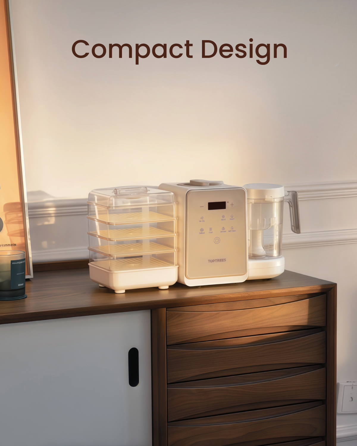 - Food-grade Safe Materials: The blending cups of the pet treats maker, with a capacity of 1.3qt, are made of high-quality Tritan material—a premium, baby-grade, food-contact-safe plastic that is safe for high-temperature use. The drying module, with a total capacity of 4.2qt, features drying sheets is made of PA material, while the steaming basket, with a 0.6qt capacity, is made of PP. All these materials are food-grade and reliable, ensuring that your pet's food is never exposed to harmful substances.